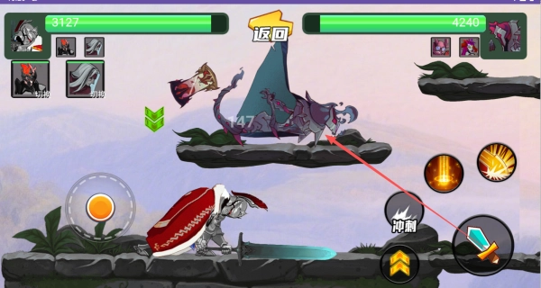 3、点击右边的按钮,控制角色释放技能发起攻击,竭尽全力的消灭敌人。