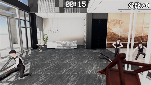 3、场景中的关卡会以各式各样的动作来躲避椅子,比如像芭蕾舞者般转圈圈、做出劈叉动作、快速闪躲,甚至还会突然趴下。