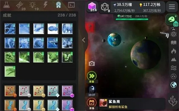 2.模拟了各种地球生物,可以升级生命,播放他们的演变。