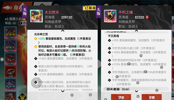 今天先来说说灵甲,灵甲由6件散件部位+6件套装部位组成,散件的作用和套装的作用完全不同。穿戴在角色右边的就是6件散件,穿戴在角色左边的就是套装了。