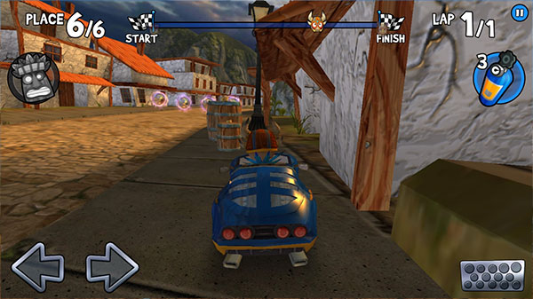4、打造了27款不同功能的道具,玩家可以自由地在比赛中使用,而且每一个道具都拥有不俗的效果,即使是玩家的车技不行如果道具使用恰当也能轻松的夺得冠军。
