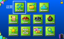 这里便是几何冲刺的主界面。点击右侧的扳手图标,接着点击左上角的“CREATE”,随后点击右下角的“NEW”,就能新建一个关卡。