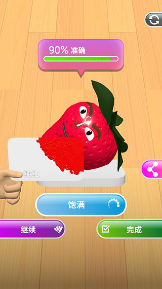 纯红-->深粉红-->在点一次纯红,就能合成100%的深红色的草莓
