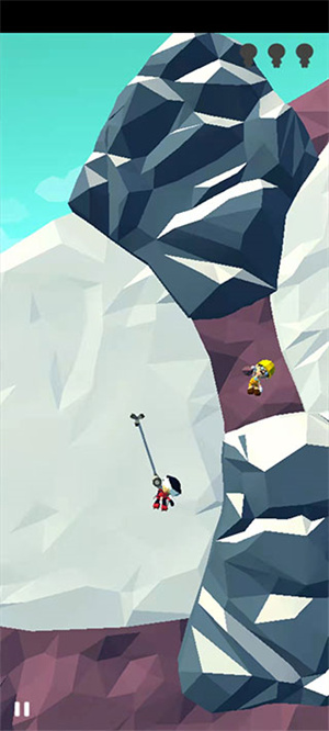 3、化身登山者使用手中伸缩自如的钩爪使用拉力带着你向上前进,小心躲避各种障碍物哦。