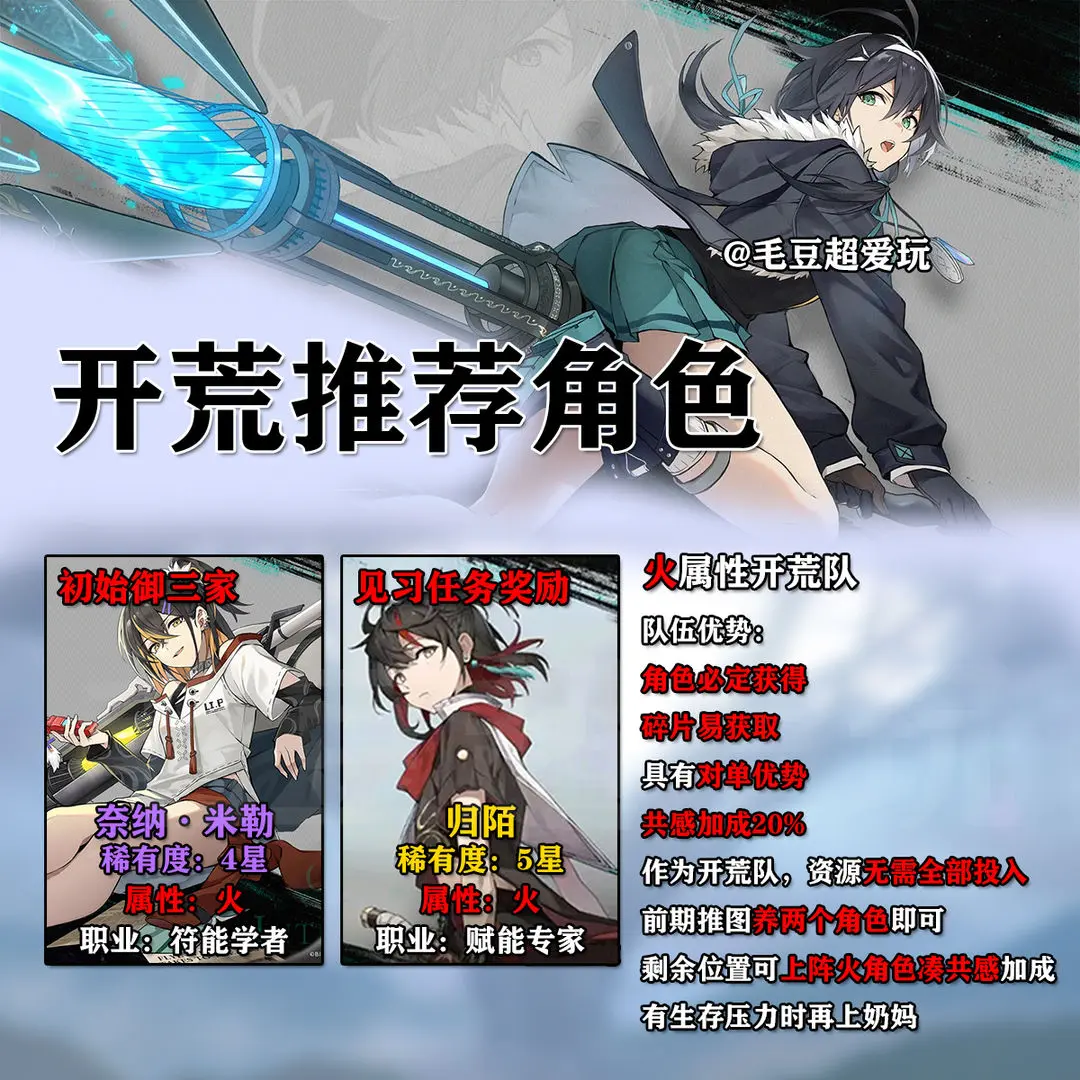 奈纳与归陌,御三家以及见习任务奖励所涉及的角色,依旧是每位玩家都能够获取的。其中,火系角色在对单方面具备优势,挑战Boss时能节省更多时间。同理,队伍剩下的两个位置,可以用来补充属性加成或者保障角色的生存能力。