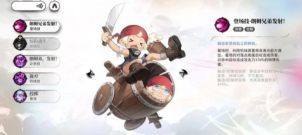 强烈推荐!新手十连抽要是抽到这个角色,那绝对是首选!它的群体伤害能力超强,清怪速度一流!登场技能所制造的飓风,不仅能把敌人击退,在持续9秒的时间里,还能造成多段伤害并实现短暂控制。必杀技更是能打出全屏范围的群体伤害,就清场能力而言,我觉得在所有角色中它当属第一,抽到的玩家可以考虑重点培养。