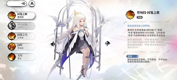 守护系里面唯一的召唤流角色,召唤的囚笼能抗下大量伤害,自带的技能回鸣可以给自己和召唤物带来回复,存活能力很强