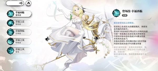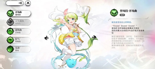三星角色获取难度低,所有技能都有治疗效果同时还参杂着少量的回怒,属于团队的奶妈。可以保障队友的生存,单挂效果一般,但配合上布蕾蒂就可以拥有所有祝福角色的能力,团队生存效果嘎嘎的!