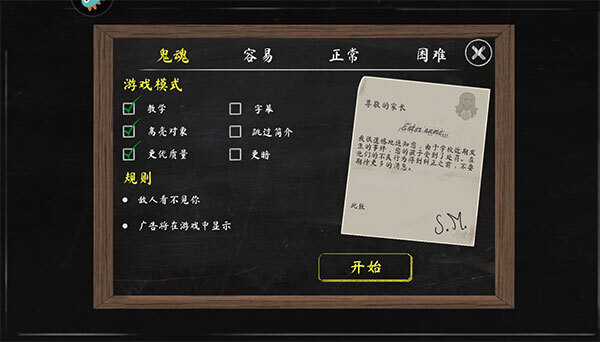 1游戏开始时,首先映入眼帘的是黑板与柜子。倘若在开局输入了名字,那么黑板上便会显示出你的名字。而这个大柜子的作用是能够用来躲避修女。只需直接打开柜门,接着躲进柜子里面即可。