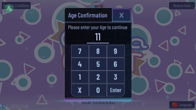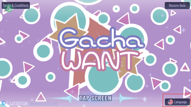 3、完成设置后,点击【tap screen】;(需注意,此页面当前为英文显示,但进入游戏后,页面将切换为中文。)