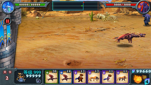4、集中火力攻击强力怪物。在后续的关卡中敌方会出现高级兵种,比如第10关的巨龙。这些兵种实力非常强,我们需要堆积更多的兽王来对付他们。