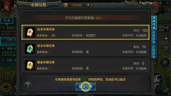 首先,重中之重自然是大家在端游里极为熟悉的清源任务。清源任务能从清源长老那里接取,总共分为五环。每一环能获取的经验会逐步提升,而且每一环都设有五个星级,只有五星任务才能得到最高经验。遥想当年,为了刷出一个五星任务,不少英雄甚至刷到破产。在此得先说明,前期刷新任务所需的铜钱并不多,所以各位英雄千万别小气,别舍不得花那点钱,务必一定要刷出五星后再接取任务,如此才最为划算!
