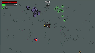 进入战斗界面后,怪物靠近玩家时,玩家武器会自动攻击。怪物被击杀后会掉落绿色物品,玩家捡起后会增加相应经验与金币。那种绿油油的树,被击杀后会掉落血包,玩家捡起就能回血。此外,它还有可能掉落箱子,捡起箱子可增加道具。玩家在关卡捡到的金币等同于经验,二者一体。在拾取金币的下方,有本轮玩家未捡起的金币,系统会自动储存。下一轮打怪时,掉落的前部分金币为双倍。例如,若玩家当前有5个金币没捡起来,下一轮掉落的前5个金币就都是双倍的,会给予玩家双倍经验和金币数量。也就是说,只要玩家保证足够的杀怪数量,金币这轮捡或者下一轮捡都没问题。