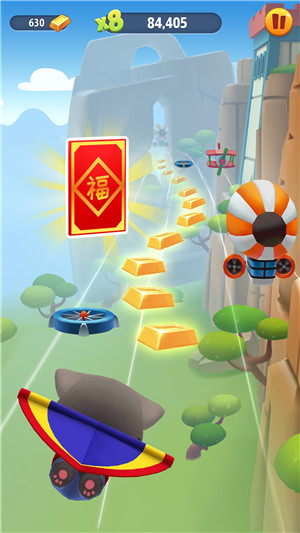 “梯云纵”作为武当派的轻功绝学,能使人径直跃至半空,不但能瞬间摆脱战斗,还可赢得喘息的机会。在《汤姆猫跑酷》里,有一种道具与这招效果类似,那便是“飞机”。玩家获取此道具后,便能驾驶飞机在毫无障碍物的空中畅快收集金条。在紧张激烈的跑酷进程中,驾驶飞机无疑是一段难得的轻松时刻。而且跳伞落地后,玩家在短时间内不会遭遇障碍物。需要特别指出的是,飞机和前文提到的头盔、磁铁一样,都能够借助金柜开出的强化道具来升级,以此延长道具的持续时间。若想尽情享受道具带来的便捷,记得赶快升级哦!