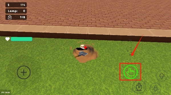 4、挖掘到物品后,点击手指图标自动放入背包。