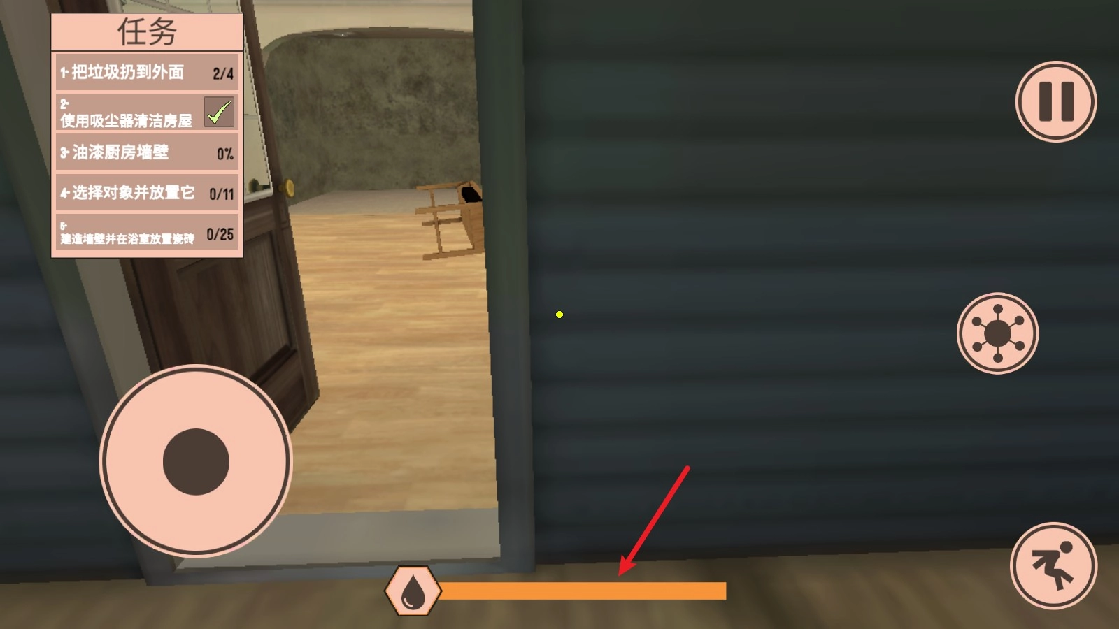 2、接到自己的第一个装修任务,左上角会显示具体的任务内容。