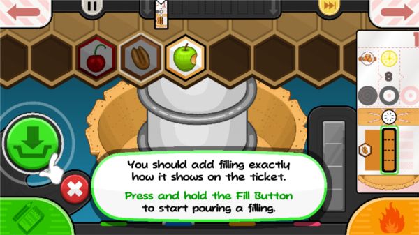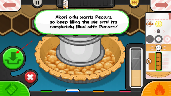 7.左右拖动上方的格子可以选择水果,将需要的水果对准木盆中间。