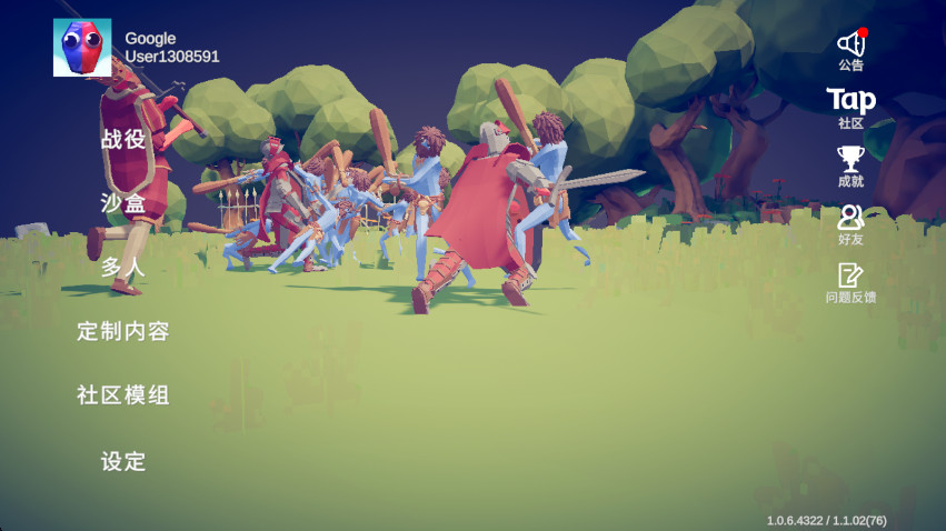 这款游戏主要涵盖两种模式:战役模式与沙盒模式。于战役模式里,玩家获取的游戏内资金有限,需凭借这些资金组建军队,进而战胜敌军。而在沙盒模式下,不存在金钱方面的限制,玩家能够组建两支军队。这两支相互对立的军队,既能够分别放置在地图相对的两侧,也可以让其中一支军队包围另一支。当玩家点击“开始”按钮后,战斗即刻打响,两支军队会迅速冲向对方并展开攻击。一旦其中任何一支军队被击败,战斗便会暂停,此时玩家将会得知哪一方是胜利者。