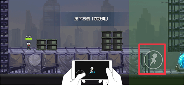 2. 点击右侧的跳跃键,就能跳过眼前的障碍物。要是长按此键,角色会跳得更高;而双击该键,则能实现连跳。