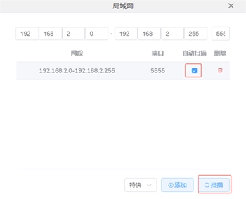 4、点击软件的左上角的【扫局域网】功能按钮,找到投屏设备就可以了。
