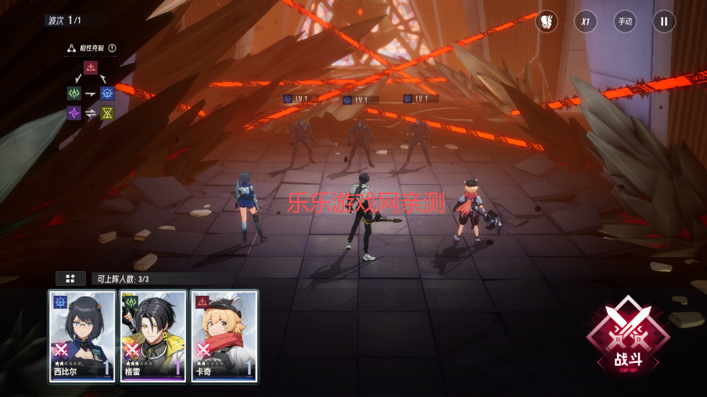 3、开始前会有个新手教程,一共可以上阵三个角色,记得好好选择,组成合适阵容。