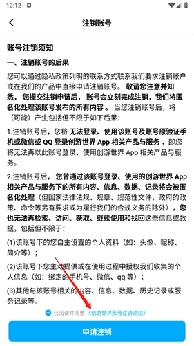 4、阅读注销账号须知,点击“申请注销”选项即可。