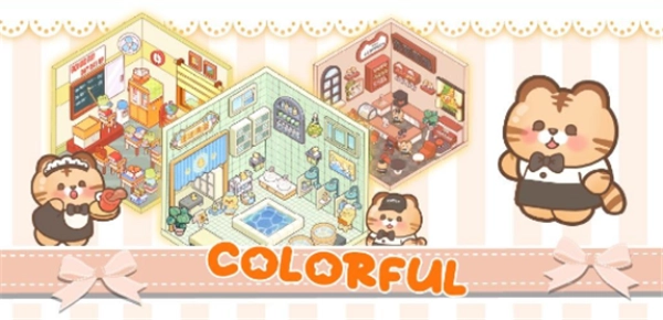 4、为角色搭配配饰,且角色会在装饰后的场景中互动,如猫咪在房间跳跃,增添生动感。
