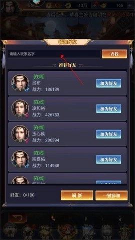 2. 点击添加好友并输入游戏名字进行搜索。