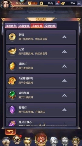 1. 在主界面点击武将,查看已拥有的武将,推荐阵容。
