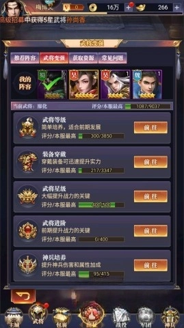 3. 在武将强化界面寻找提升实力的方法。