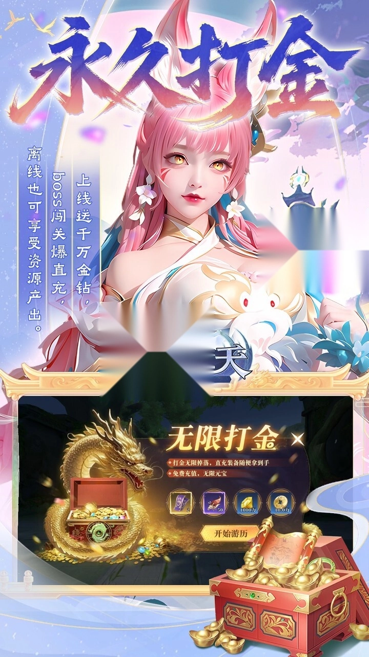 ★打金特权:升级领取千元奖励,永久打金特权,boss闯关免费掉落直充卡