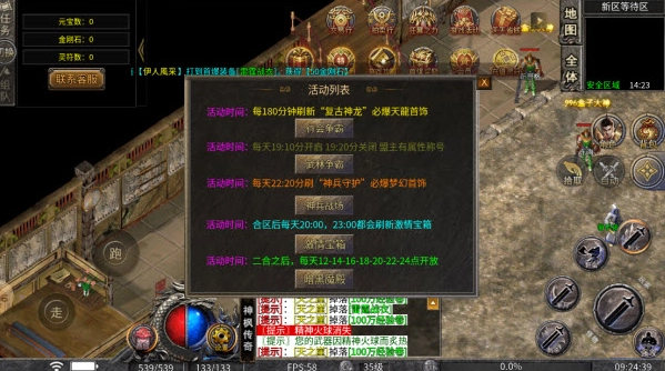 3、玩家55级之后,可通过打怪、吃经验珠的方式升级,最高能升到58级。而58级至60级的等级提升则在【荣耀之城】。