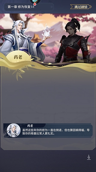 2、点击启程后会看一段游戏背景CG,点击一下画面即可弹出跳过剧情按钮