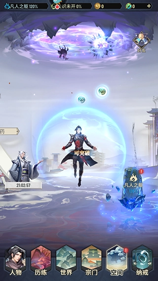 5、修行后点击凡人之躯即可突破境界