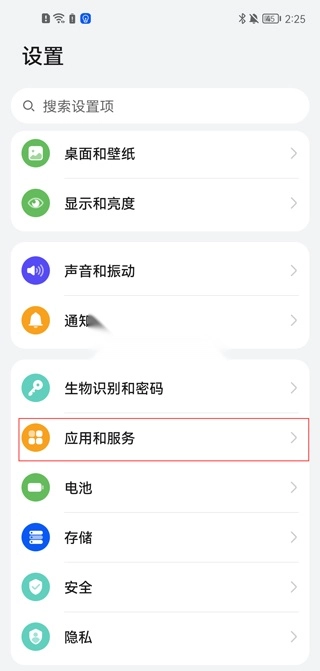 1、首先,在荣耀手机上找到并打开“设置”应用,接着选择“应用和服务”选项;