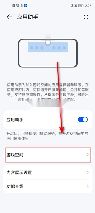 3、在应用助手页面中,找到并点击“游戏空间”选项;