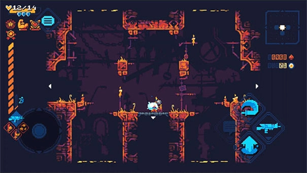 采用了鲜亮明快的像素画风,操纵主角在狭小地牢里闪转腾挪,伴随着Joonas Turner作曲的动感BGM,尽享类银河恶魔城的狂野粗豪!