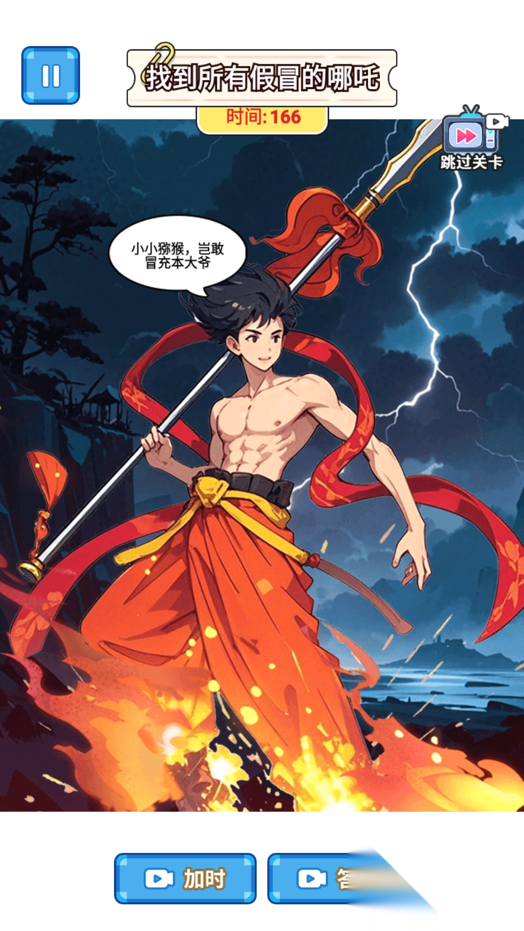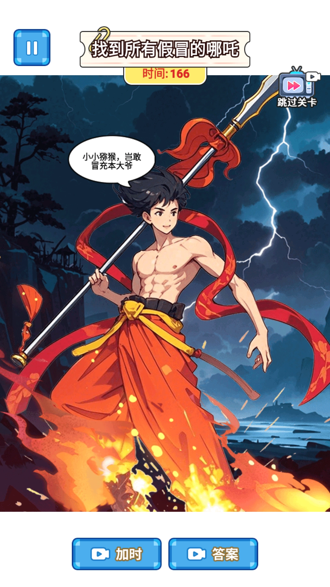 3、设置一系列难度递进的关卡,每关以不同场景和真假哪吒的组合为特色,玩家需要找出所有的区别。