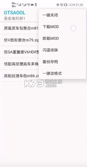 《gtsaool》是一款专门针对GTA手机版玩家打造的辅助工具,集合了大量攻略、MOD安装教程以及实用功能。它给予详尽的安装指引,为玩家化解操作方面的困惑,同时具备“闪退排除”与“一键关闭”功能,能够切实有效地解决游戏闪退及卡顿现象,助力玩家尽情享受流畅的游戏体验。