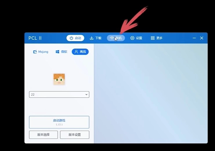 首先你要把PCL更新到最新版,再点击上方中间的联机按钮