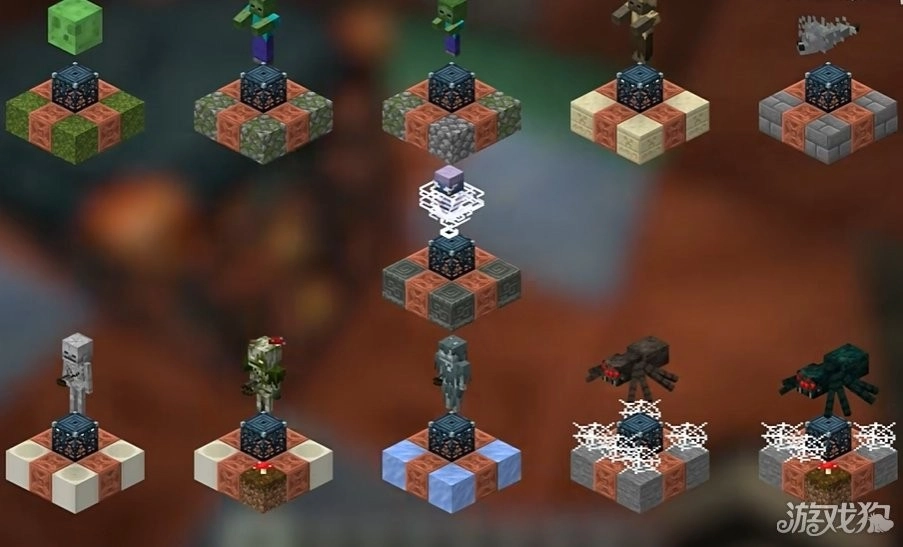 试炼刷怪笼根据底部的方块类型召唤对应的生物,击杀对应练刷怪笼生成的所有生物