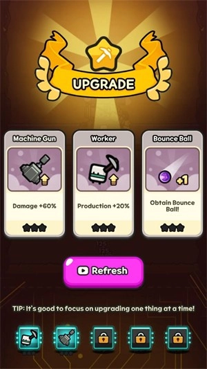 3、周围的小人会自动挖矿来提升挖掘机的等级,提升等级后可以选择一项升级强化自己。