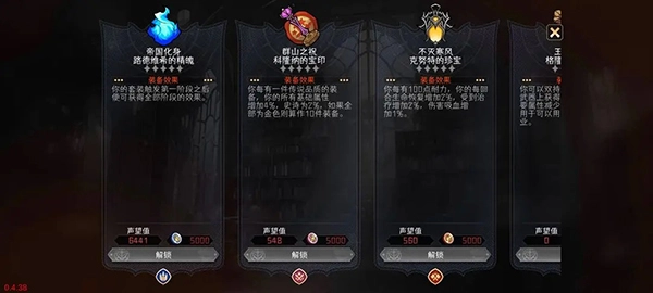 在RogueLike的局内冒险之外,游戏还有着局外养成,玩家可以为英雄们搭配各种独特的【装备】或是凑齐【套装】,通过【转职】获得新的特性与技能,点亮【天赋树】来进一步改变英雄的风格。也可以与大陆的各方势力展开外交,通过积攒声望来解锁新的【种族】、【势力装备】和【势力套装】,在势力声望到达一定程度后甚至能解锁该势力的专属【圣物】,得到独特且极为强大的加成,把握住每一份可以抵抗混沌邪神的力量。
