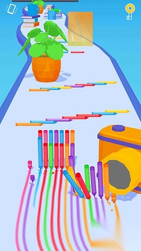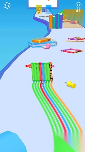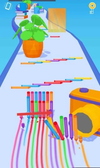 1. 掌控彩色铅笔队列,使其顺着赛道前行,收集与队伍颜色相同的铅笔以扩充规模,同时避开诸如玻璃墙之类的障碍物。