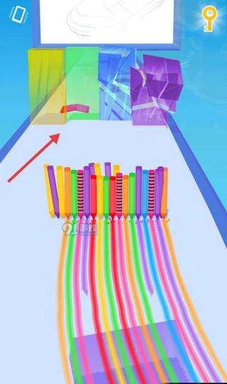 2、路过场景道具(如相机),按赛道布局调整铅笔排列,匹配通道颜色,通过色彩门获取积分。