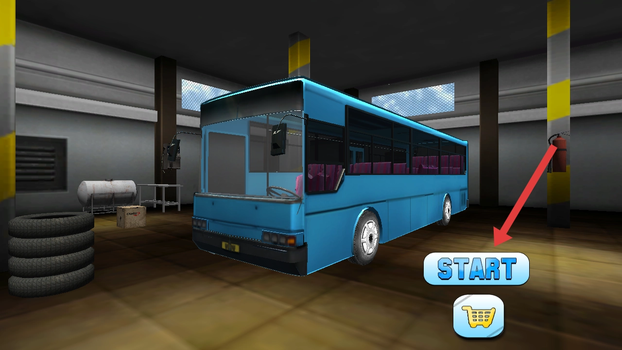 1. 在印尼旅游巴士模拟器的车库界面,点击蓝色的【START】按钮,从而进入巴士驾驶模式的选择环节。