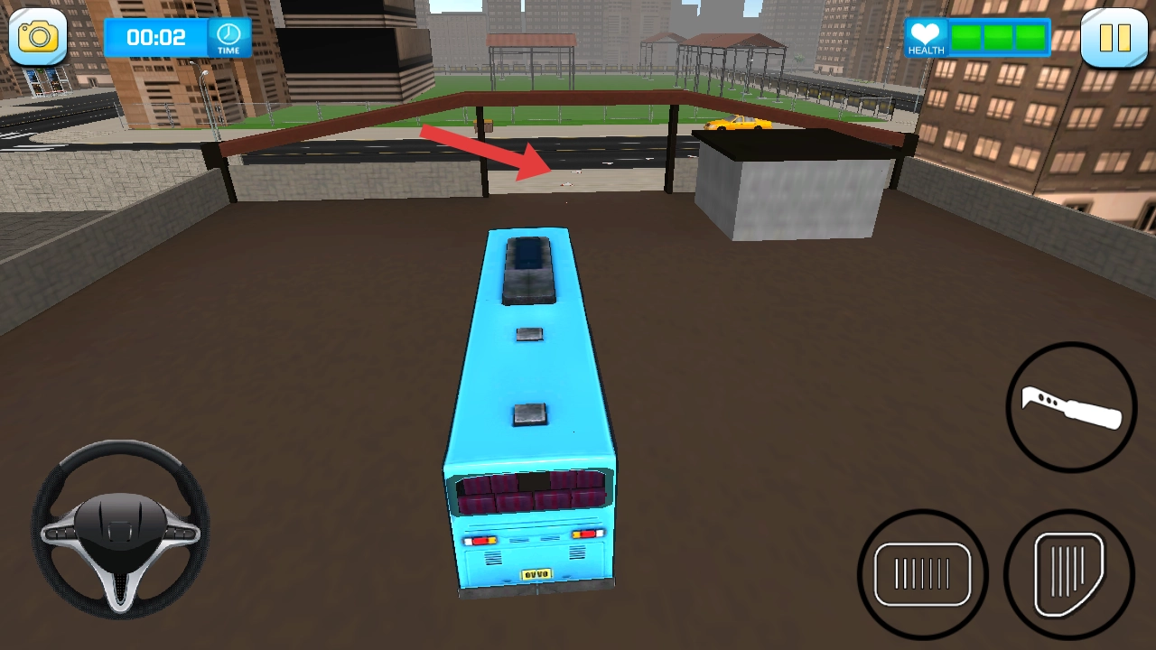 3、游戏内操控蓝色巴士,留意左上角时间限制,沿箭头指向的道路行驶,完成驾驶挑战。
