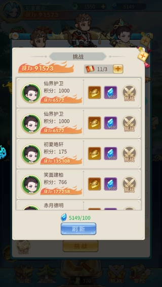 4、根据自己的战力,挑选可以战斗的对手点击挑战