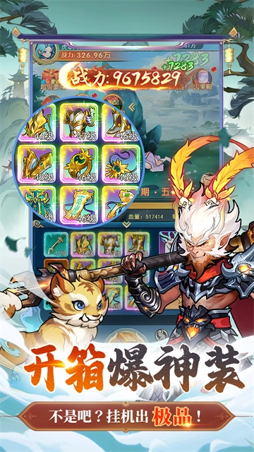 威风凌凌的侠客、深海的龙女、山里崩出来的小猴子,一块神奇的石头,砸它砸它,各种至宝装备从石头掉落,携带各种奇珍异兽相伴而行,飞升渡劫!