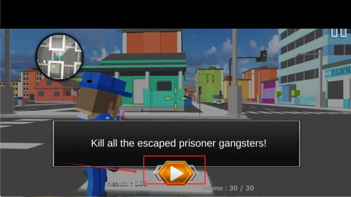 1. 于游戏初始界面,点击橙色的播放按钮来开启任务。依据左上角小地图的指示去寻觅逃犯,同时要留意底部弹药显示为30/30 ,需合理分配射击次数。